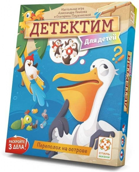 Настольная игра «Детектим. Для детей: Переполох на острове» — это красочные, увлекательные и забавные истории. В отличие от других игр серии «Детектим», карты приключений не содержат текста, что делает игру понятной даже для самых маленьких игроков.
