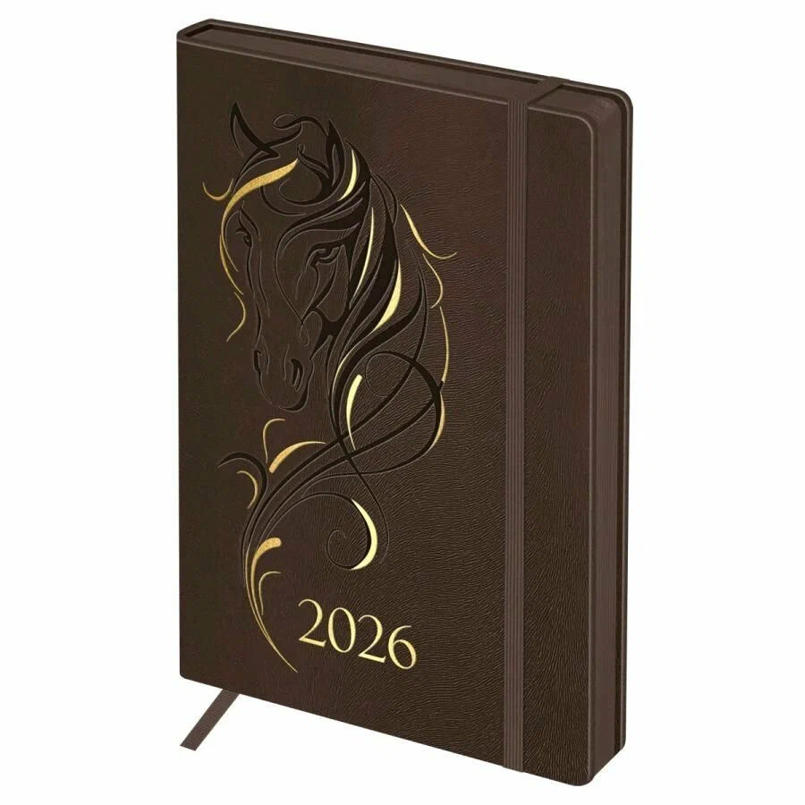 Ежедневник датированный на 2026 BG "Horse" – это не только практичный помощник, но и стильный аксессуар. Встречайте год Лошади с изысканным ежедневником bg. Элегантная обложка изготовлена из экокожи. Блинтовое тиснение и отделка фольгой символа года добавляет выразительности и символизирует силу, скорость и стремление к успеху. Лаконичный и стильный, он вдохновит на новые достижения.