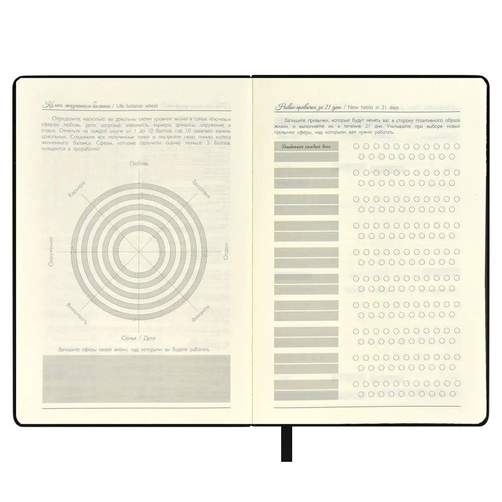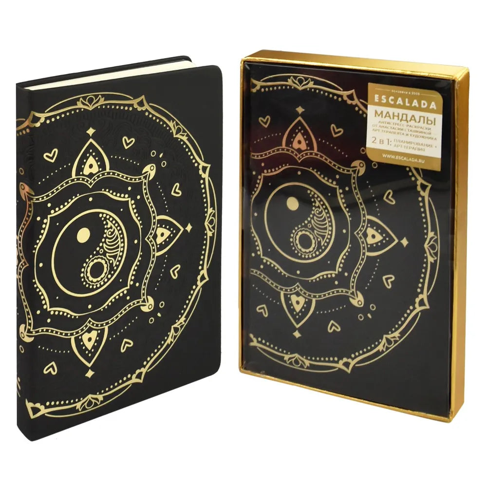 Ежедневник недатированный ESCALADA #АРТ-ТЕРАПИЯ А5 124л в твёрдом переплёте из экокожи "Софт-тач" с тиснением 3D-фольгой + 4 листа антистресс-раскрасок "Мандалы"