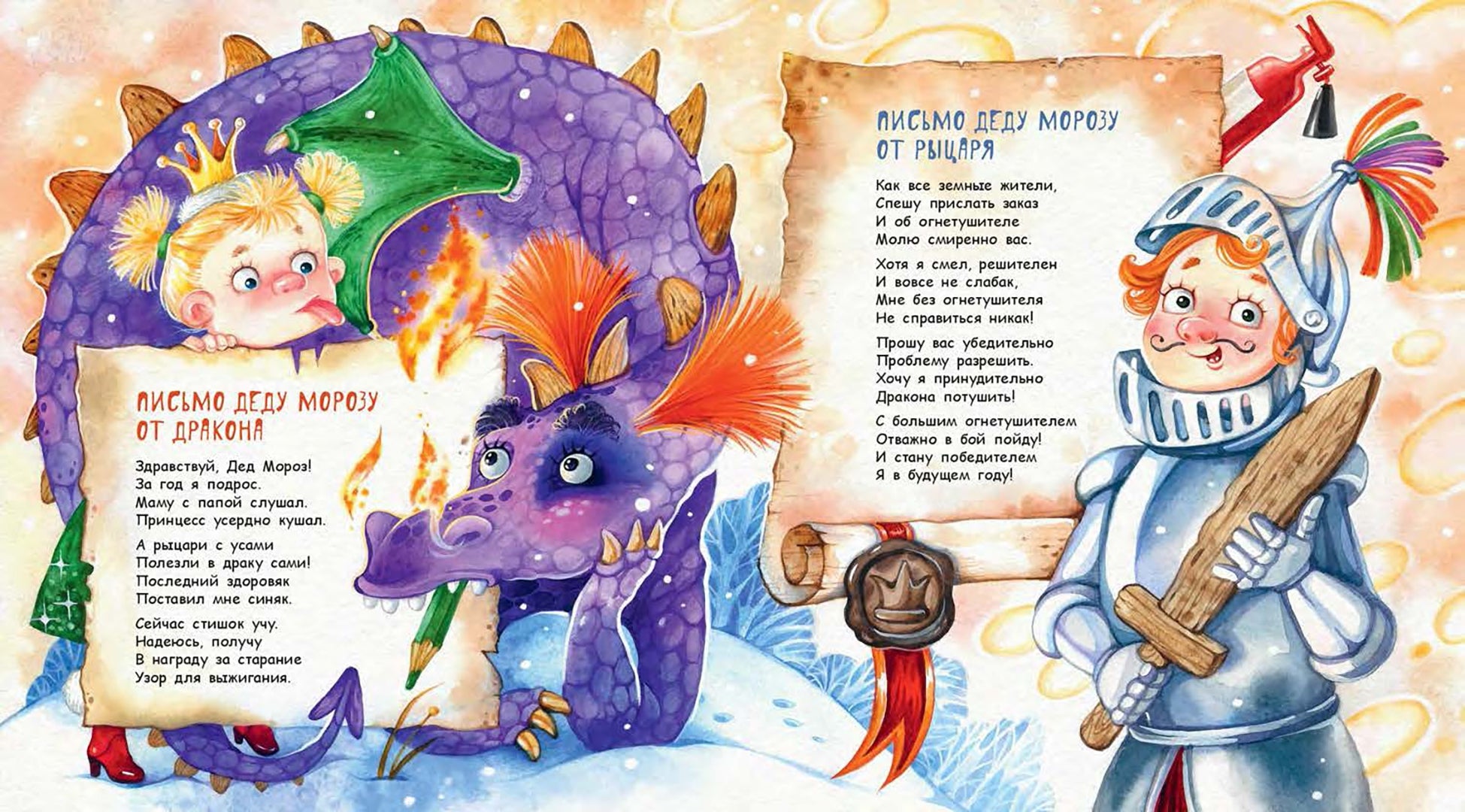 Каждый год к Деду Морозу летят письма со всех концов страны. Все просят доброго волшебника исполнить самое заветное желание. И пишут ему, оказывается, не только дети, а даже самые настоящие сказочные герои! Храбрый рыцарь и грозный дракон, суровый Кощей Бессмертный и весёлая Баба-яга, Золушка и Водяной, русалки и многие другие… О чем же они просят Деда Мороза? Открывай скорее эту книгу - узнаешь и ты!