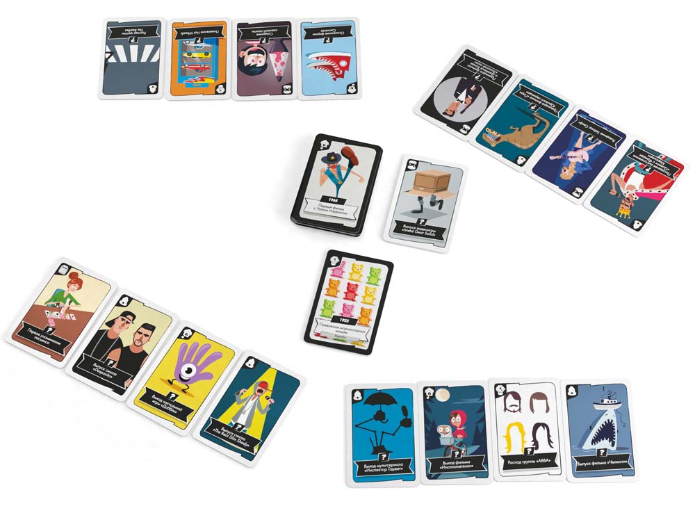 Под какую песню танцевал весь мир раньше — под «Despacito» или «Gangnam Style»? Премьера какого фильма состоялась сначала — «Титаника» или «Парка Юрского периода»? А «Тетрис» придумали до «Пакмана»… или после него? В игре «Таймлайн Твист. Популярная культура» вы будете задавать себе аналогичные вопросы каждый раз, когда попытаетесь сыграть одну из своих карточек.