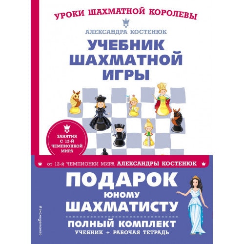 Перед вами уникальный комплект – уроки шахмат от 12-й чемпионки мира Александры Костенюк! С помощью учебника и рабочей тетради ваш ребёнок узнает азы этой увлекательной игры, отработает полученные знания на практических задачках и сможет сыграть свои первые партии. Кроме того, в книгах представлены весёлые задания, направленные на развитие логики и внимания.