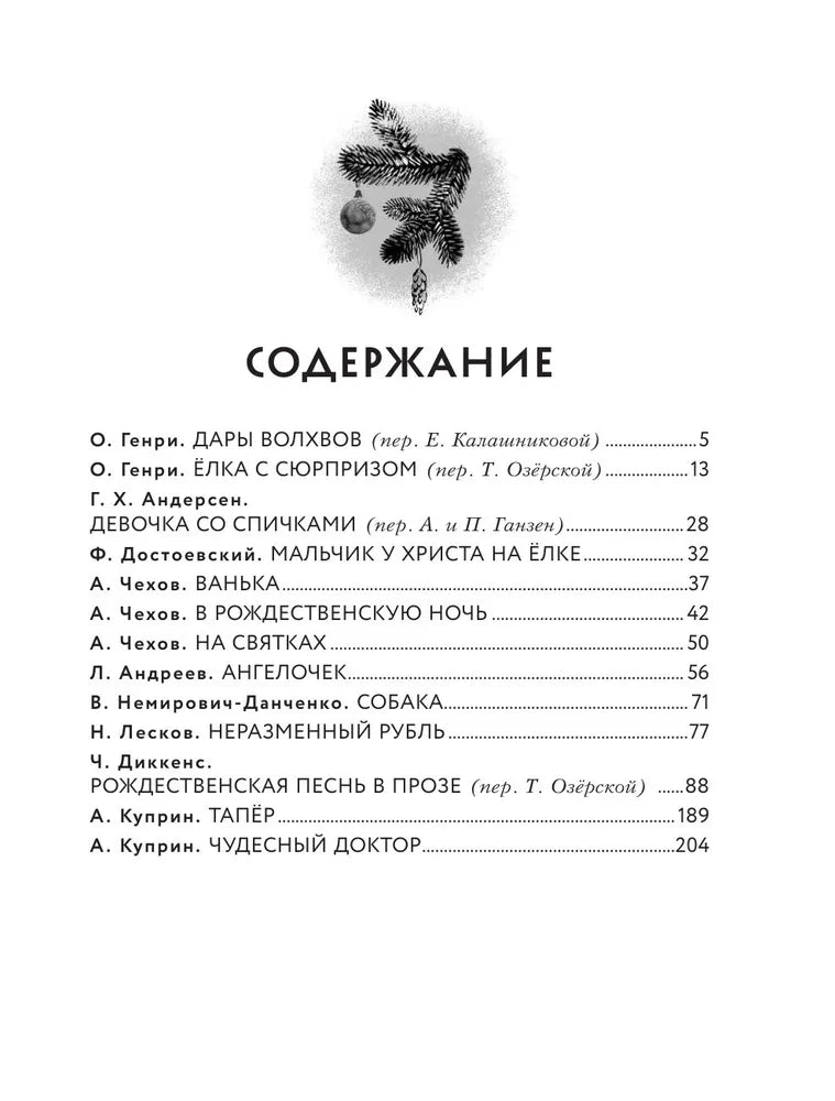 Произведения О'Генри, Г.-Х. Андерсена и Ч. Диккенса приведены в каноничных переводах Е. Калашниковой, Т. Озёрской, А. и П. Ганзен.